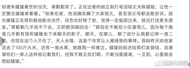 后来蒋勤勤才知道,朱媛媛那时已是癌症晚期,咳嗽是因为癌细胞转移到了肺部。但她对朋友只字未提,甚至还在电话里笑着约火锅,仿佛只是普通感冒。