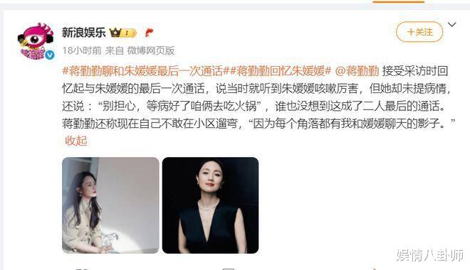 娱乐圈里,有些友情像老酒,越陈越香;有些离别却像风,吹过就再也回不来。最近,蒋勤勤在接受采访时,谈起与已故好友朱媛媛的最后一次通话,字字句句都是遗憾,却又藏着最温暖的约定——“等病好了,咱俩去吃火锅。”