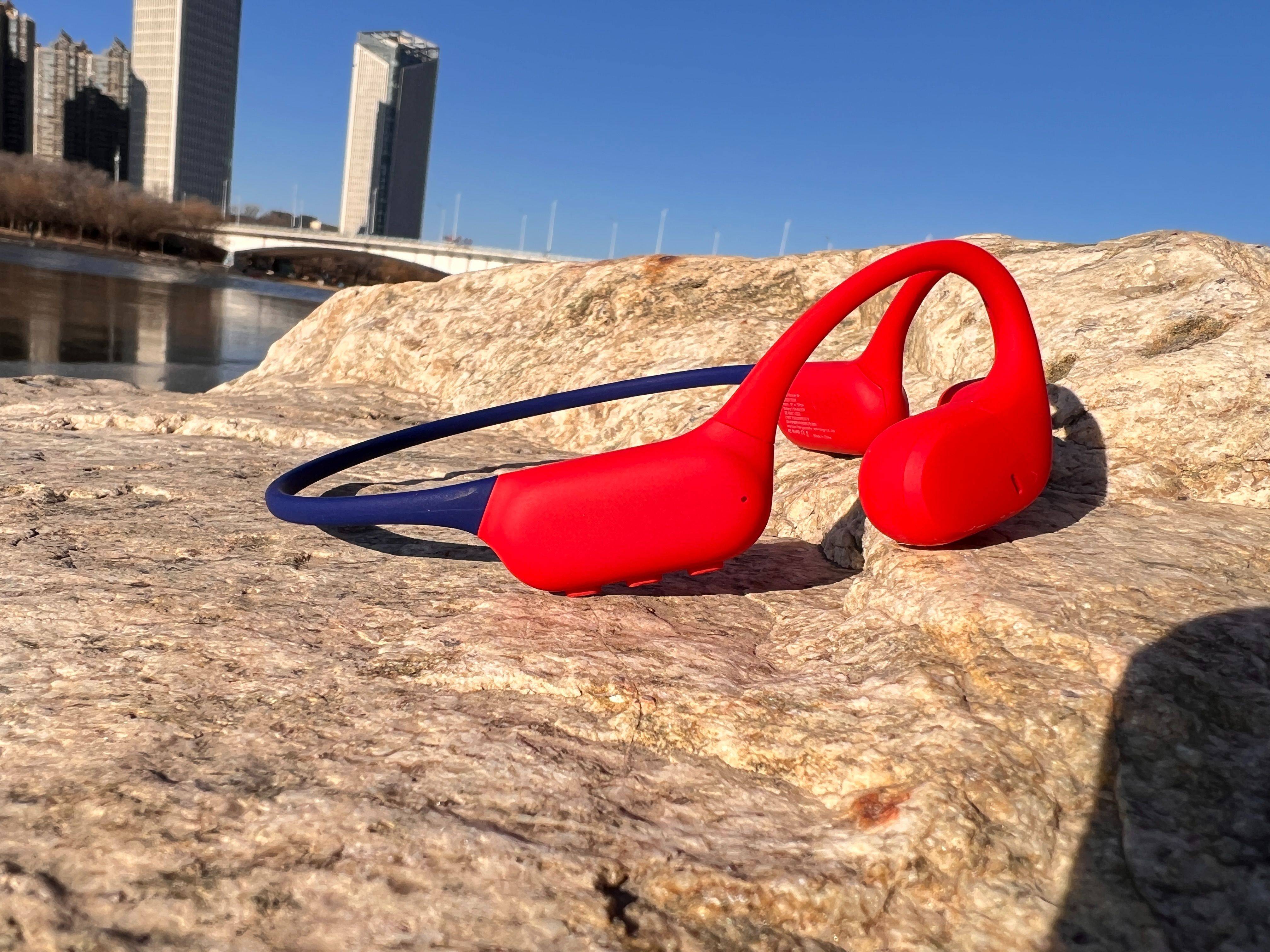 配色方面,目前南卡Runner Air有海棠红、深空灰、玄英黑以及鹿绒棕四中配色,我入手了很喜庆的海棠红。这款耳机采用了比较独特的红蓝撞色设计,后挂区域为蓝色,其余部分为红色,看起来既时尚又充满活力,很讨人喜欢,现在佩戴还能为新春佳节增添喜庆气氛。