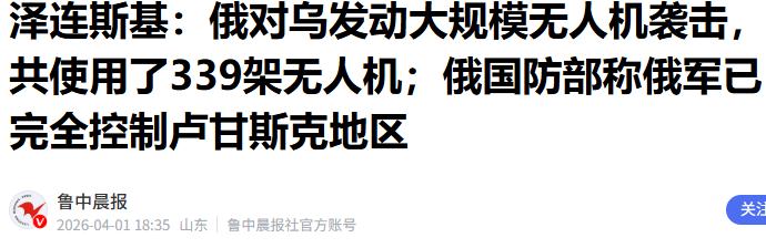 2.2026-04-01《泽连斯基:俄对乌发动大规模无人机袭击,共使用了339架无人机;俄国防部称俄军已完全控制卢甘斯克地区》-鲁中晨报
