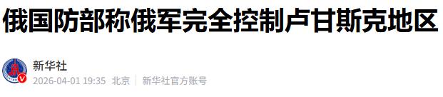 3.2026-04-01《俄国防部称俄军完全控制卢甘斯克地区》-新华社