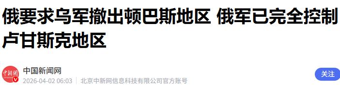 1.2026-04-02《俄要求乌军撤出顿巴斯地区 俄军已完全控制卢甘斯克地区》-中国新闻网