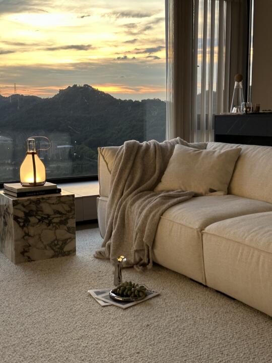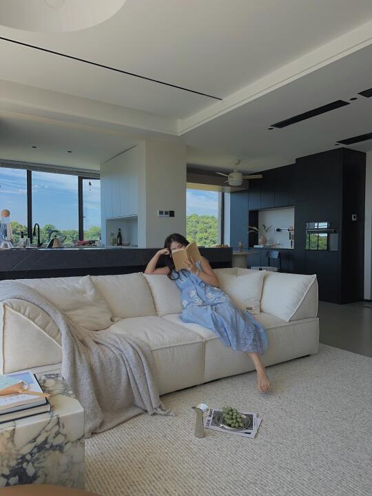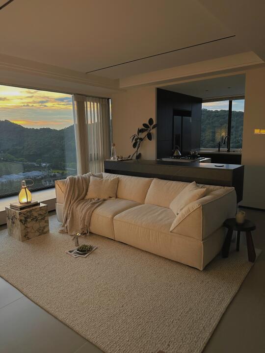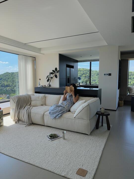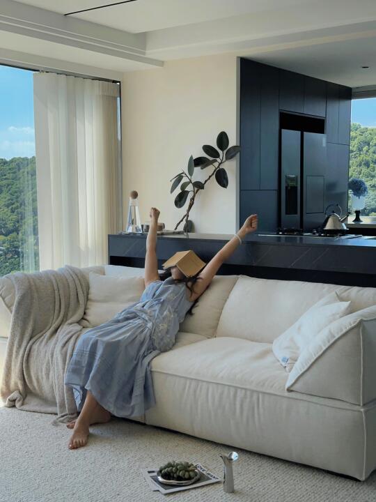 一年四季你更喜欢什么季节呢? 每次我的回答都是夏天🌿☁️ 朋友反驳我:夏天那么热,真的很难忍耐… 但是,试想一下,在明媚的家里,外面是湛蓝的天空软绵绵的云☁️,空气中夹杂着阵阵穿堂凉风~ 一杯冰镇的汽水,一片沁凉的西瓜🍉 傍晚还有绝美的晚霞 这样的夏天,不是很妙嘛~ 分享几个小tips: 宽宽软软的棉麻沙发真的很好躺平,让赖在客厅的舒适度直接🔝 搭配上百寸大电视,简直难以想象世界杯的时候我会多快乐!🥹 羊毛大地毯真的是客厅最佳拍档,耐用又高级 现在很流行植物果壳做的风铃🎐一晃动就是美妙的溪流白噪音 这宅家感绝了✨