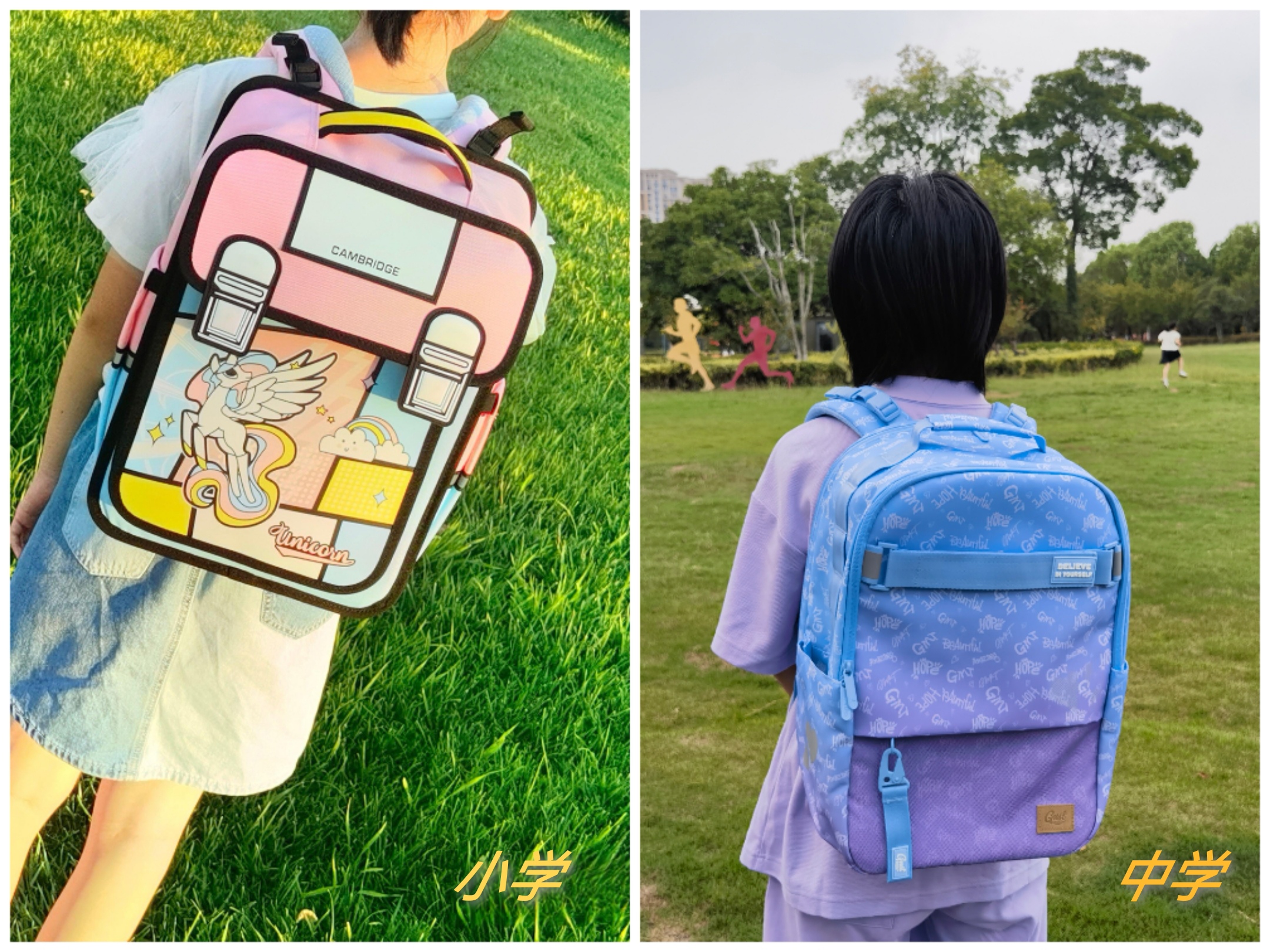 语言说出来不形象,直接上图,小学阶段卡通解决一切,而到了中学阶段,孩子的思想开始慢慢独立,审美也渐渐的变得成熟起来,对书包的要求除了人体工程学之外,还需要添加设计感、时尚等等一些其他的元素。