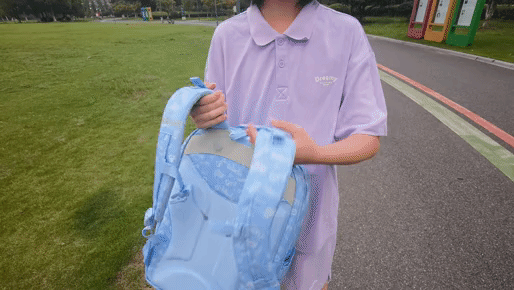 背包越是大容量就意味着负重,孩子们上下学,无论是走路、坐车还是骑车,体力消耗巨大。尤其是夏天,天气炎热,书包的透气性就很重要。咱不说专利的护脊背板和气流流动设计这些专业名词,我家女儿上学大约走2公里,过两个红绿灯吧,说背这个包背部一点儿都不显热,透气散热快舒服不压背。