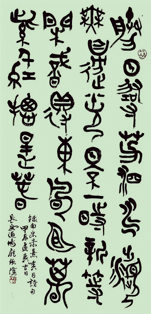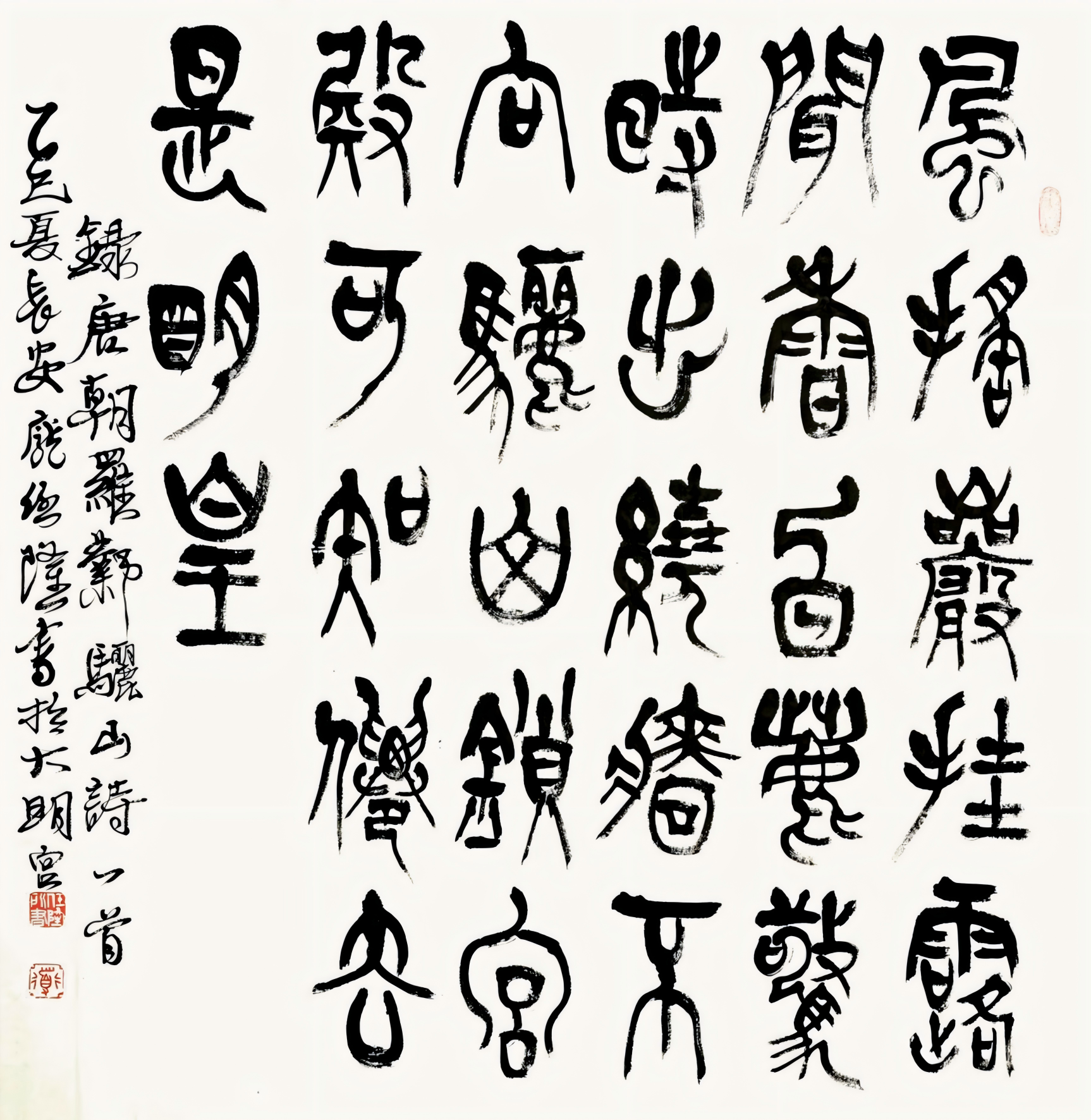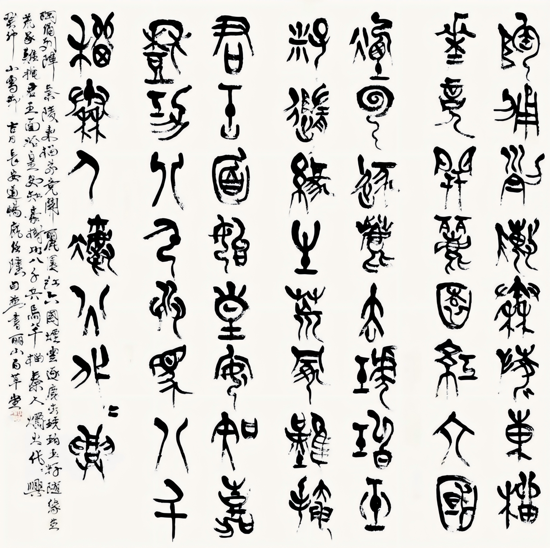 三十多年来,大篆既像一位沉默的导师,教会我耐心与坚持,又像一位亲密的挚友,分享着探索的喜悦和困惑。从傅嘉仪先生的教诲到刘自椟先生的点拨,从安阳殷墟的甲骨到临潼利簋的铭文,从《西周金文撷英》中的拓片到案头的刻刀,这份情缘早已融入我的生命。西周金文的金石气是青铜的坚韧,是岁月的沉淀,也是文化的传承。当我在灯下展纸研墨,看着笔尖的线条在宣纸上延伸时,常常会想起那些铸造青铜器的工匠——他们或许不知道,三千多年后会有人对着他们留下的文字凝神静思,会用笔墨延续他们的创造。这份跨越时空的对话,正是中华文明生生不息的密码。