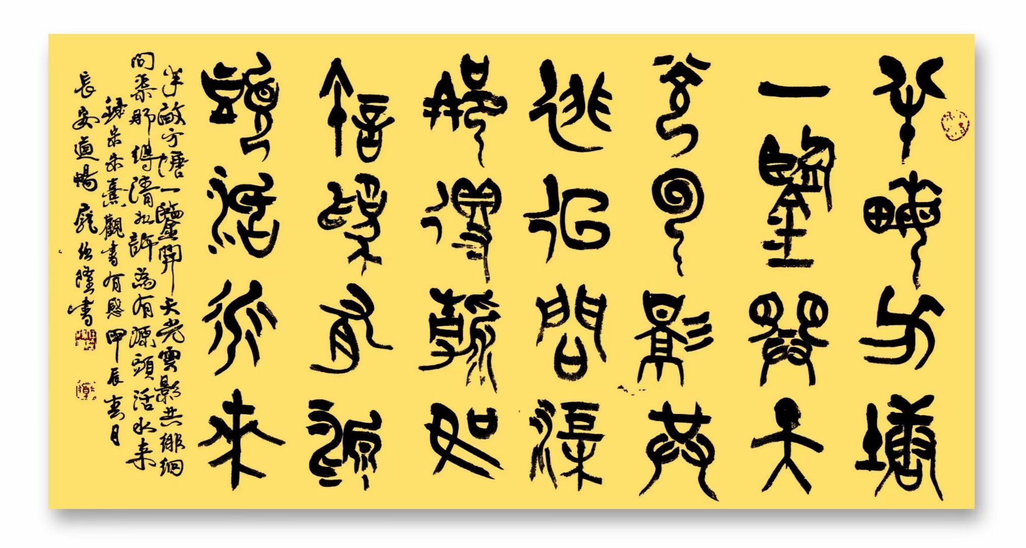 如今,我的案头仍摆着傅嘉仪先生题写的那副对联,墨迹虽已有些淡了,却愈发显出精神的厚重。窗外的银杏叶又黄了,像极了初见先生时的那片金黄。我知道,对大篆的探索永远没有终点,而这份情缘会像西周的青铜一样,在时光的淬炼中愈发彰显出力量。