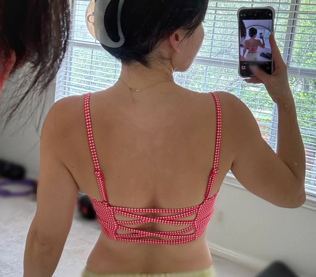 Bra: Ivy Wrap Sports Bra - Red Gingham, M