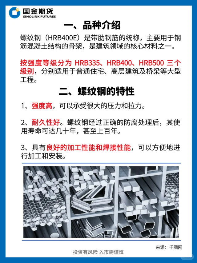 螺纹钢作为 “黑色系” 的重要成员,价格走势简直是投资者的 “心跳检测仪”。 市场情况瞬息万变,钢价也总是起起伏伏。价格波动的背后,到底藏着多少 "黑色黄金"? 别着急,接下来就带大家走进螺纹钢的产业链,看看如何在这场 “黑色系” 风云中,找到属于自己的财富机会! 知识干货 财经知识 产业链 螺纹钢 钢材 大宗商品