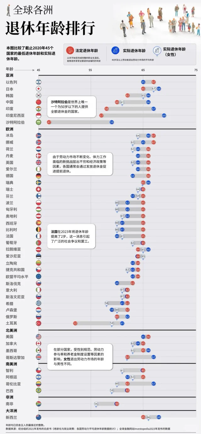 中国的退休年龄其实跟世界主要国家比都偏低(见图二)主要发达国家法定退休年龄基本都在65岁,中国飞速发展,在未来也理应跟国际标准接轨。(此其三)