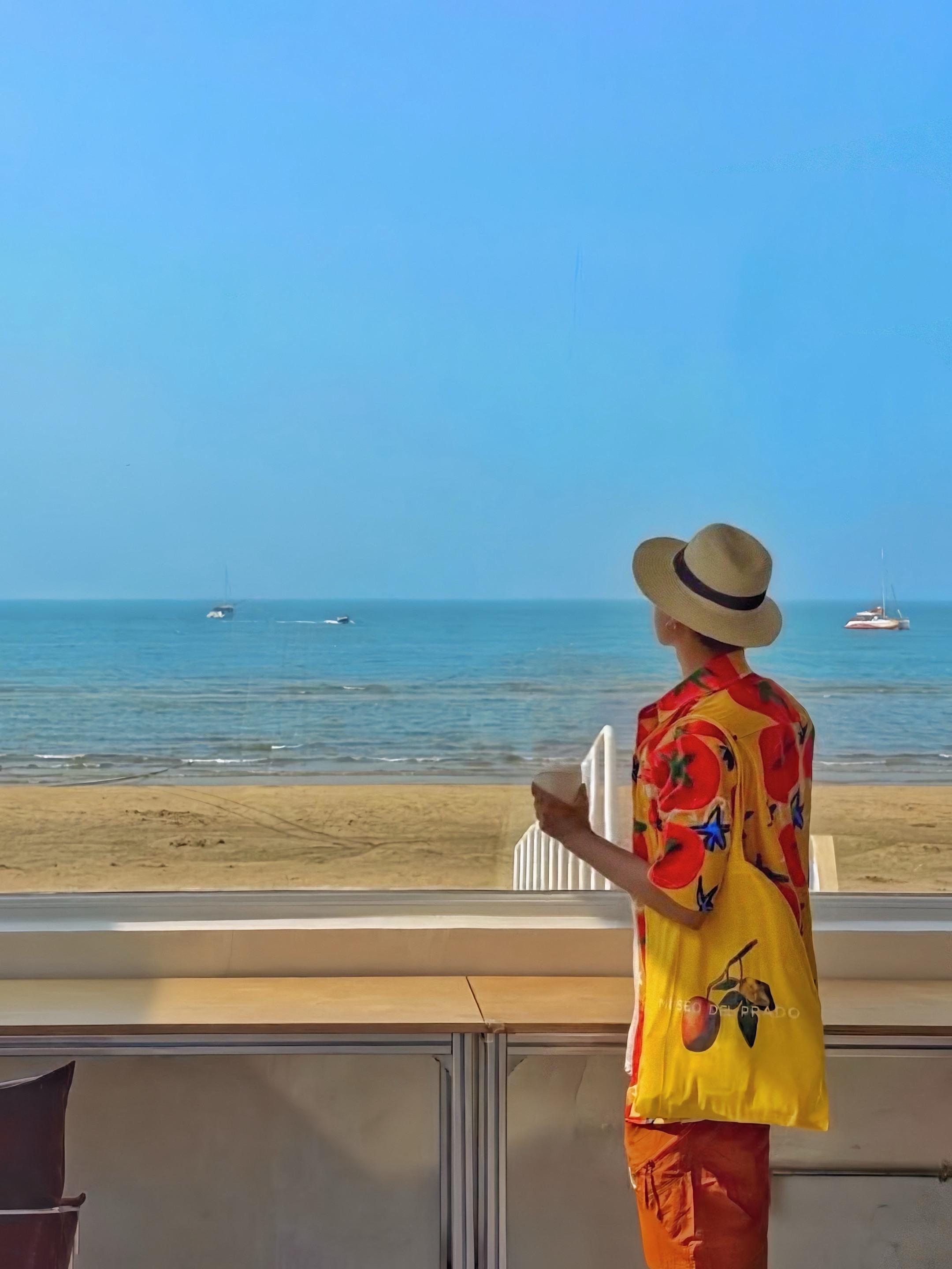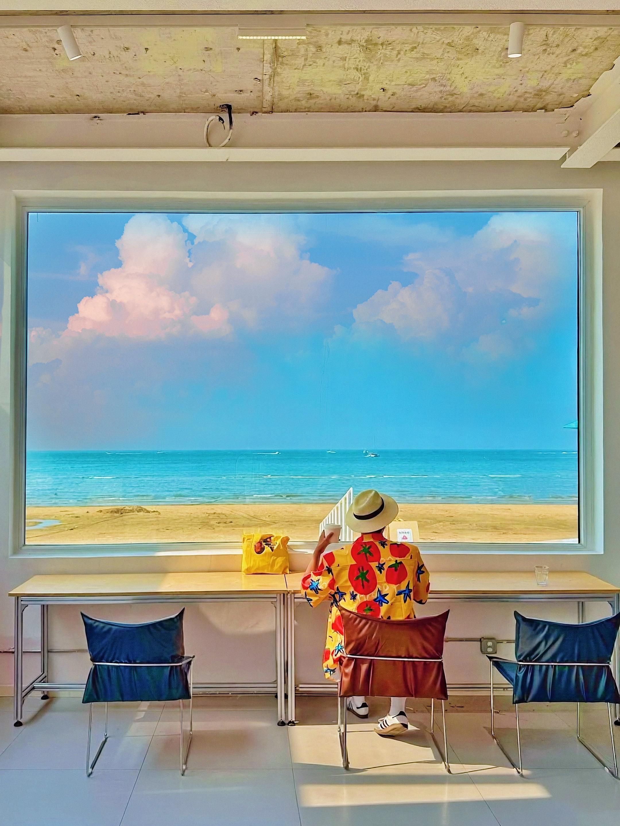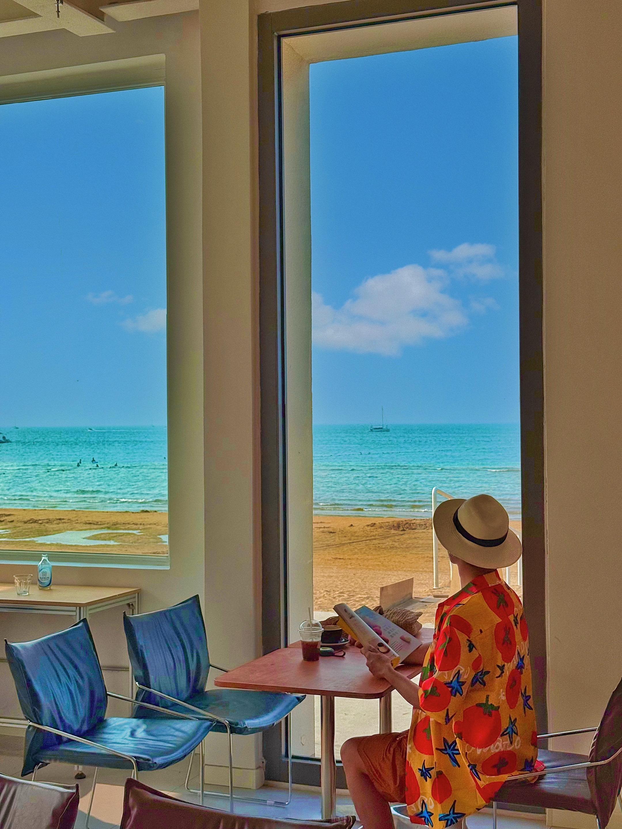 热了就坐在室内落地窗前 欣赏着一线海景🌊
