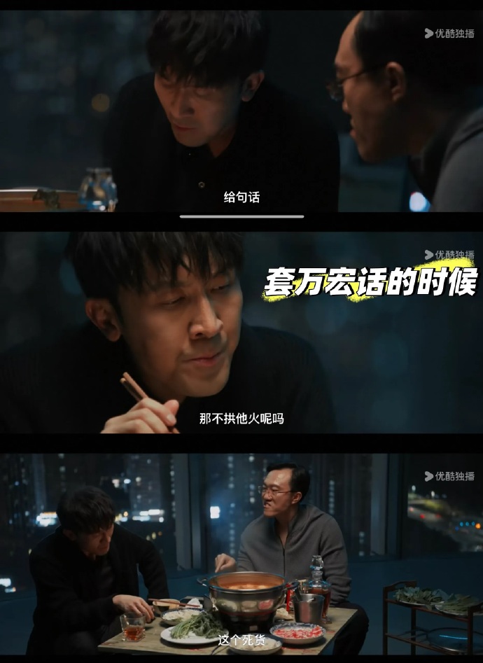 《以法之名》反派吃火锅为何非要用矮桌凳呢? 《以法之名》反派商量事总喜欢吃火锅,很多人说是因为这是一群各怀鬼胎心思各异的坏人,一个锅就不能下/毒。 这个说法暂且可以理解,那为什么又要非要坐小板凳趴在小桌子上吃呢?那里可是陈胜龙的公司的大平层呀,宽敞得他可以在里面疯狂地开卡丁车。为什么不放一个高大上的桌子呢? 答案是他们都是穷孩子出身,从小要么蹲在地上吃饭要么坐在小板凳趴小桌子上吃饭,习惯了。 放眼周围,租过房的网友们,哪个没用过陈胜龙同款矮桌凳,方便又便宜,搬家时扔了就扔了不可惜,不想扔折叠一下带走不占地方。 农村摆酒席可以看一下,全是矮桌凳,有氛围感,聊天也方便。导演故意安排反派在大平层里用矮桌凳吃火锅,就是为了说明这些坏人从小穷怕了,用矮桌凳吃饭是刻在DNA里的,早就习惯了。