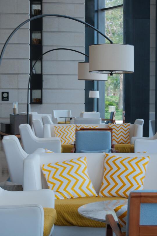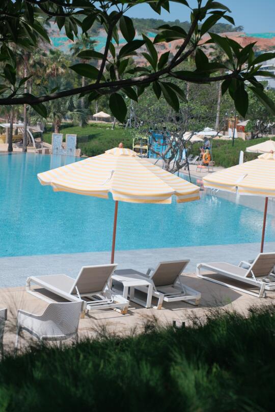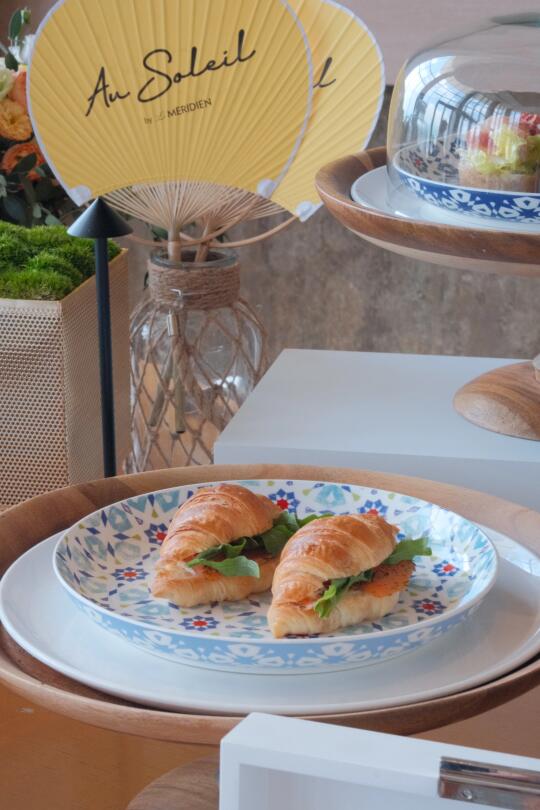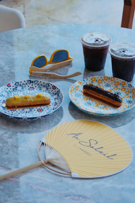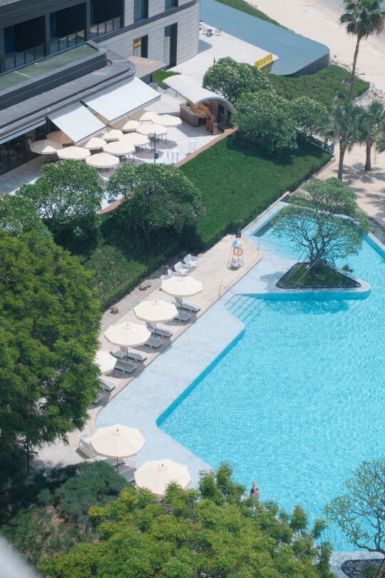 Au Soleil 艳阳之下主题季,阳光、沙滩🏖、泳池、法式黄白条遮阳伞,海风轻吹,发丝飘动,看着波光粼粼的海,牛马打工人的疲惫瞬间消散~ 很喜欢在大堂吧跟姐妹聚会聊天,喝着艳阳之下主题下午茶,咖啡的香气氤氲,法式慵懒感拉满。颜控点名表扬甜品区,鲜花环绕,每一款蛋糕🍰都精致,都勾的人心痒痒,什么控糖减肥,此刻就是甜品脑袋主导着一切 小Tips:上午9点前在沙滩艾美logo边、草地的遮阳伞真的很出片!下午6点左右在散步等待蓝调时刻真的很幸福