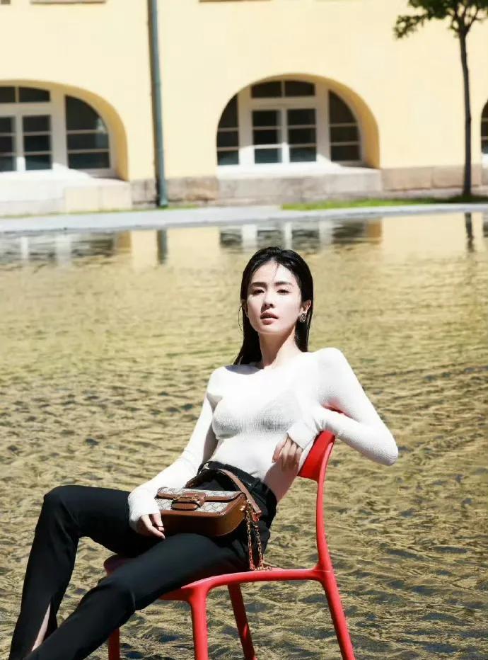 白鹿身着一袭白衣,内搭黑色服饰若隐若现,更显身材曼妙,整体造型简约而不失高级感。