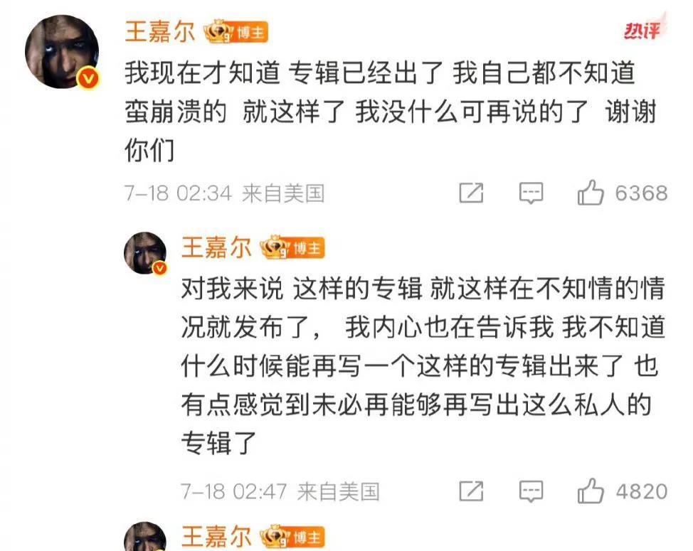 “王嘉尔深夜崩溃发文” 我来根据自己的理解理一下原因吧: 王嘉尔深夜宣传新专辑,并且在评论区解释说他现在才知道专辑已经出来了,好像本来计划是中午12点宣传专辑的,内部工作人员失误提前凌晨2点就释出专辑了,我猜可能是沟通上出了问题吧!比原计划早了几个小时