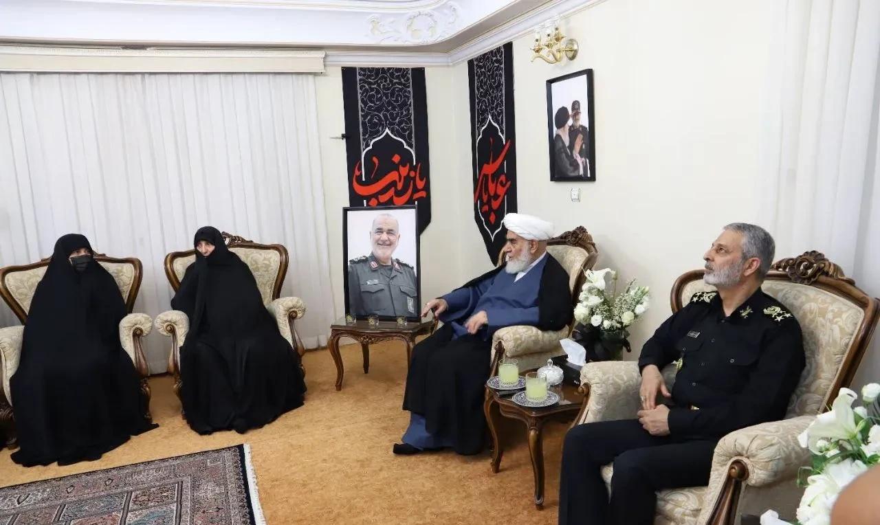 司令的家属。伊朗伊斯兰革命领袖办公室负责人代替最高领袖哈梅内伊,看望不久前被以色列定点清除的革命卫队总司令萨拉米的家属。 萨拉米的家属们一身黑袍,有的还戴着口罩,只露出眼睛。这种黑袍大褂,真是欣赏不了
