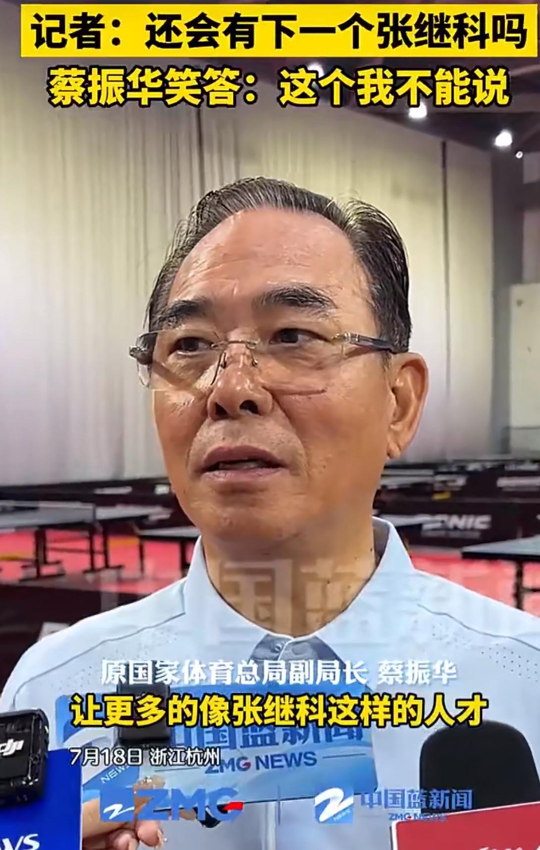 今天上午,蔡振华现身“张继科杯·全民乒乓球争霸赛(杭州站)”,担任开幕嘉宾。开幕式上,“蔡振华和张继科同台打乒乓球”的一幕很快冲上热搜[呲牙] 开幕式后,蔡振华在接受记者采访时表示:让更多的张继科这样的人才,能够开展这样的活动,只要人多,大家热情高,孩子们喜欢,我相信一定会出现国家的栋梁之才。 吴敬平教练今天第一时间转发了活动[呲牙]金牌教练吴指导也是蔡指导慧眼识珠,从四川调进国家队的。 我从来不是蝶姐,但是从前也喜欢看张继科打球。而最近经常出现在张继科直播间的郝帅,曾经也是我非常喜欢的球员。