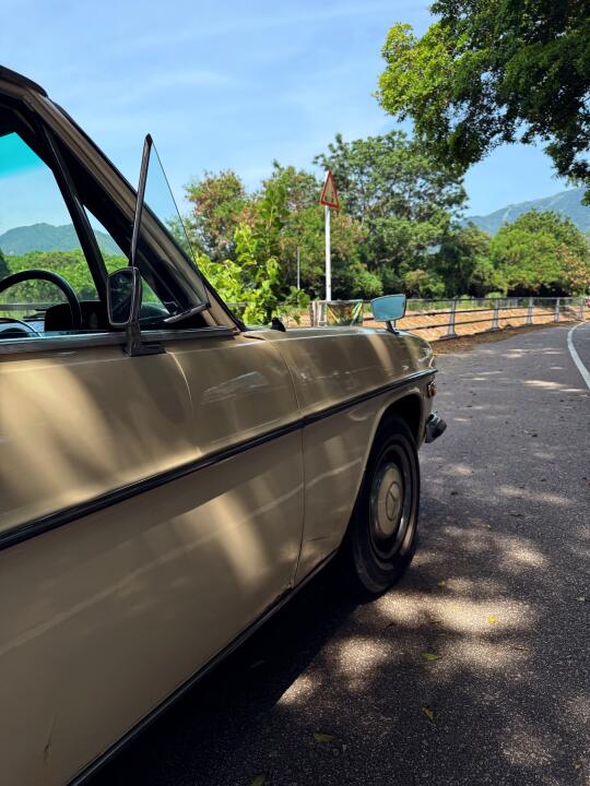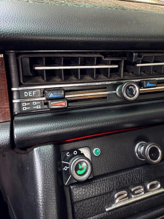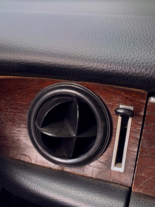 五十多年的奔驰设计可以说充满了德意志工业智慧 比如W114经典的前门三角窗,下面有个旋钮可以开合窗的角度,行驶中风直接吹到车内,还可以调节自然风量。 空调出风口现在最新款的设计依然采用电风扇的形状,可以扩风。