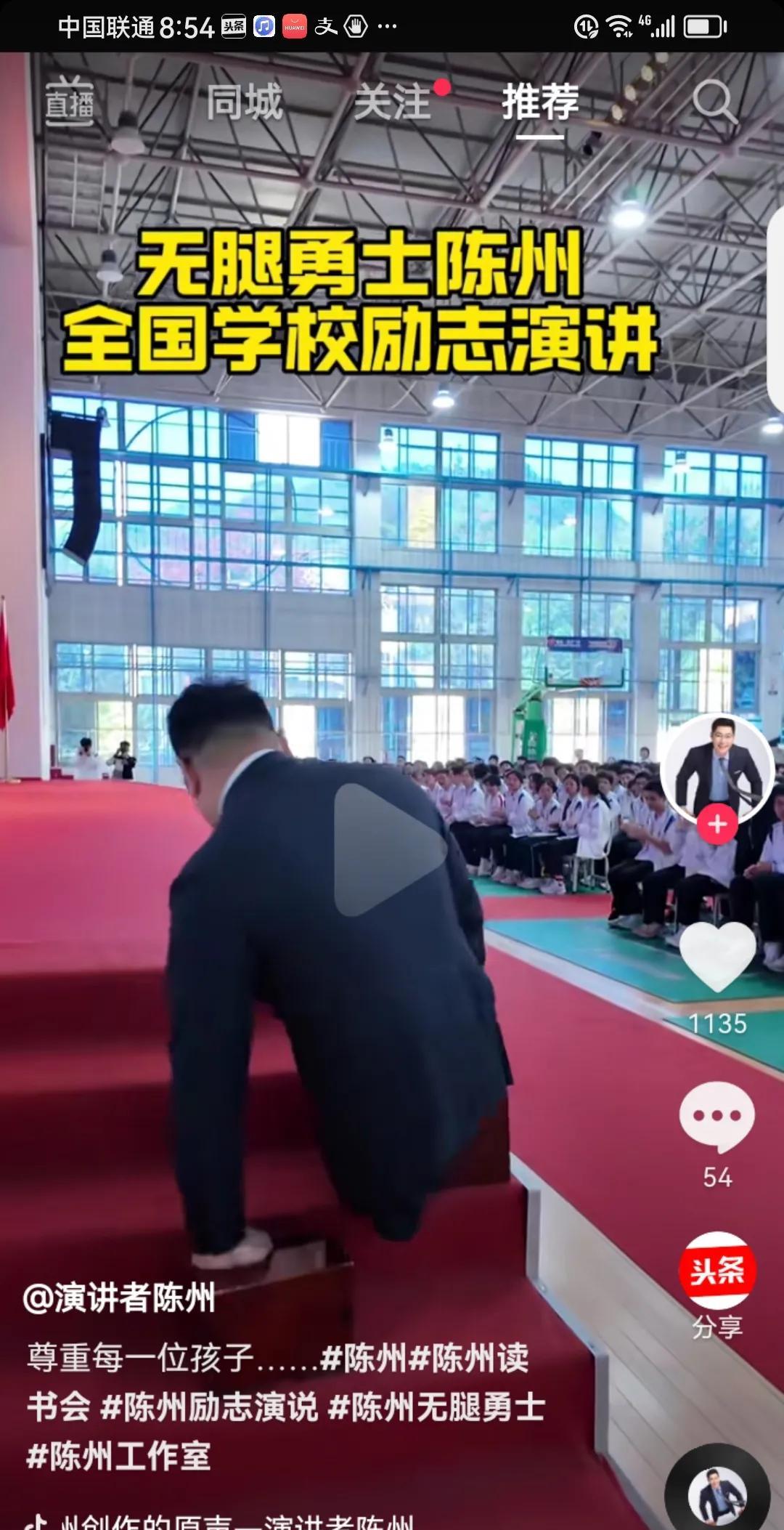 无腿勇士陈州,才应该是青少年该追的星! 他,陈州,没有双腿,豁达,坚持,真正的人生赢家!如果他,还有那些身残志坚的勇士们,成为了全国青少年追逐的星,才是我们最最希望看到的。 少年强,则国强!