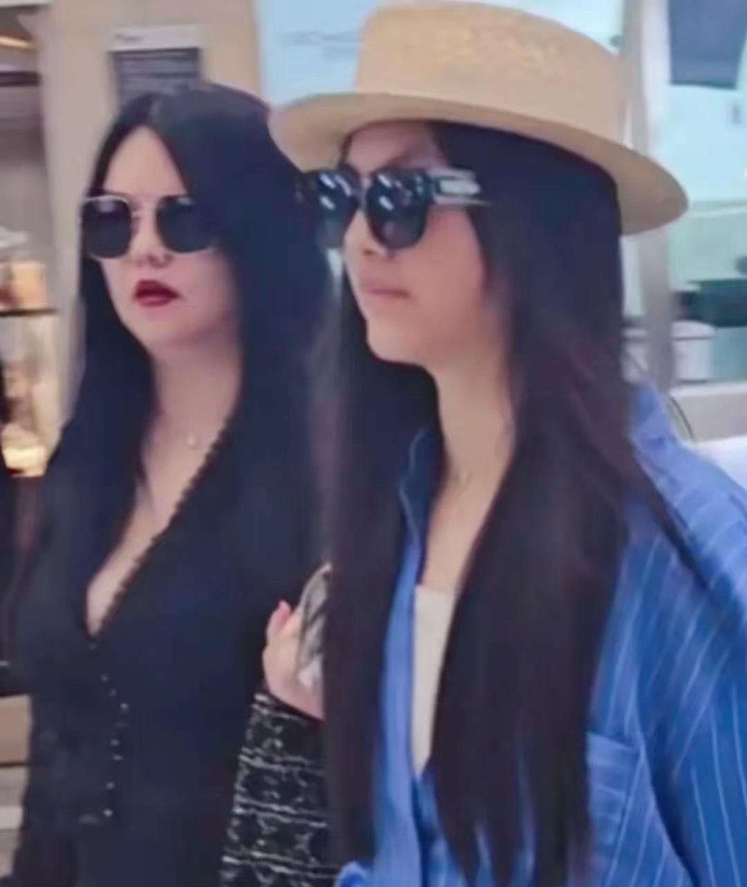 李湘和王诗龄走机场,妈妈不老、女儿不嫩,太养眼了…… 王诗龄一身克莱因蓝的套装,