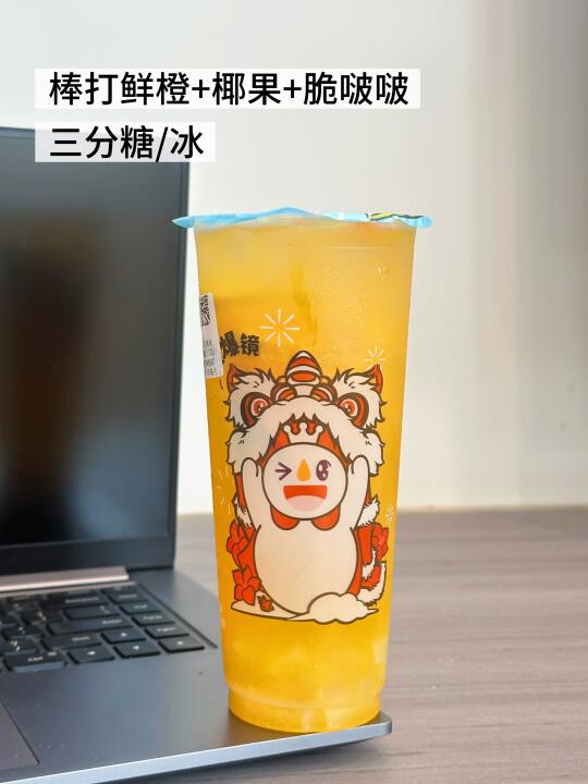 ✅棒打鲜橙+椰果+脆啵啵 三分糖/冰
