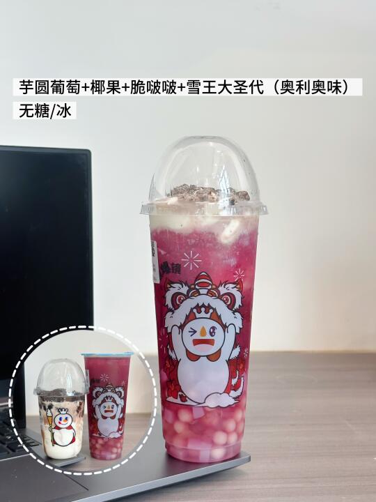 ✅芋圆葡萄+椰果+脆啵啵+雪王大圣代(奥利奥味) 无糖/冰