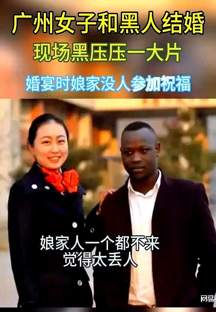 广州女子和黑人结婚,现场黑压压一大片 喜糖还搁在桌上没收呢新娘攥着手机在