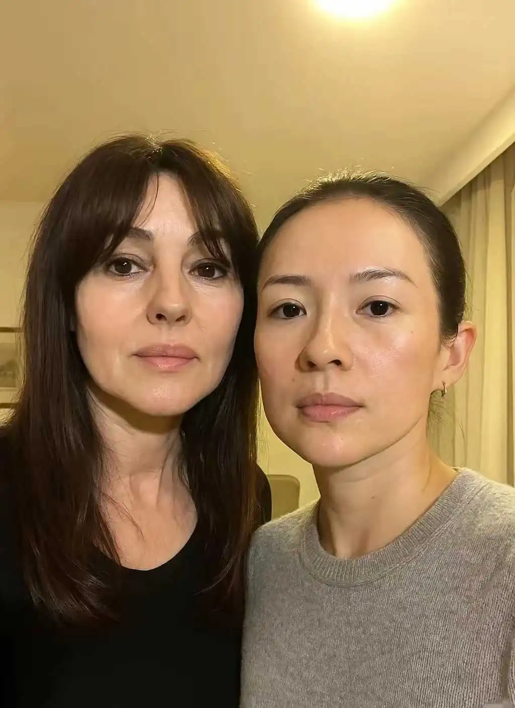 章子怡和“地球球花”莫妮卡的素颜照,这么看,外国人真的不抗老,章子怡看着更年轻。