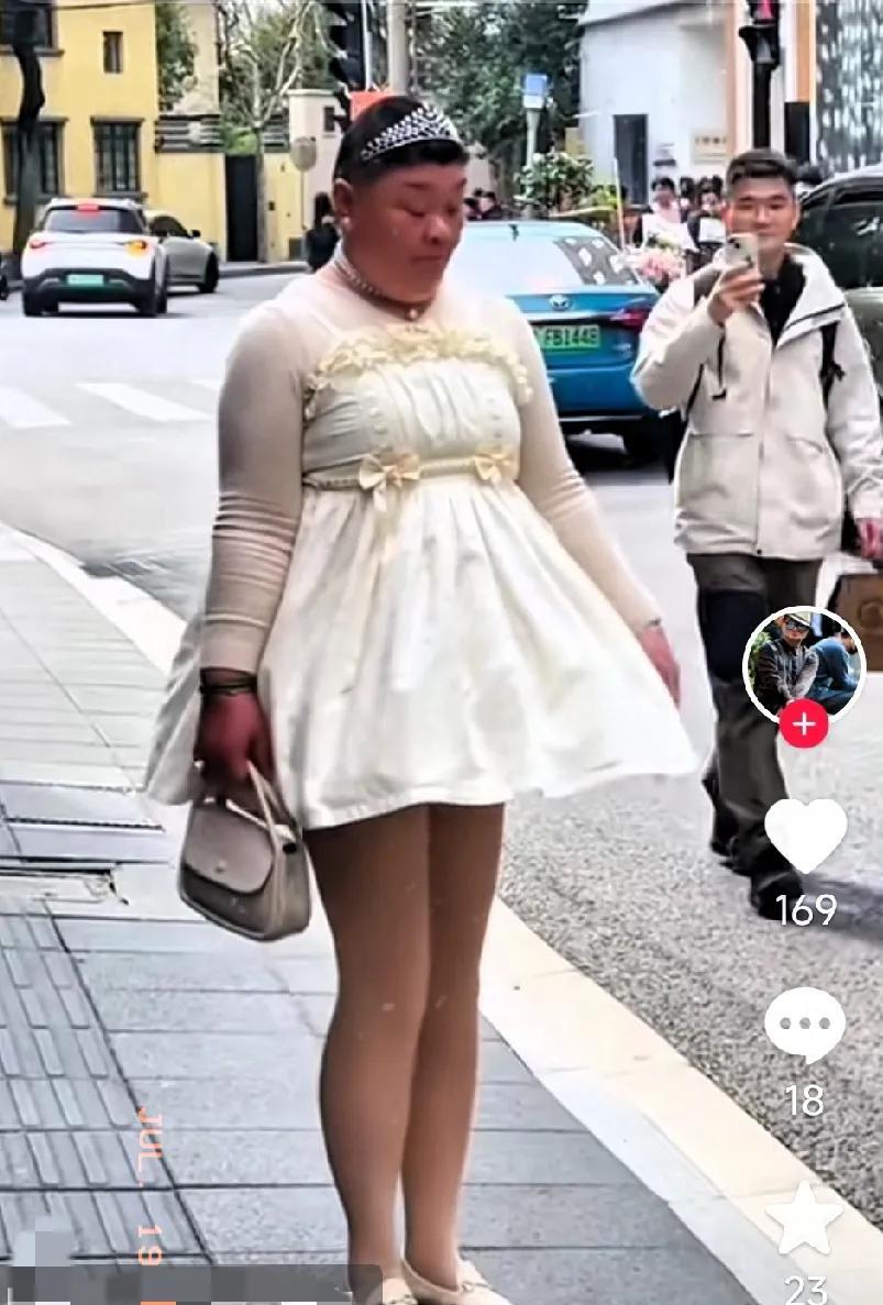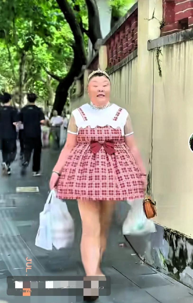 实在太佩服她的勇气了! 每天穿着不同颜色的小公主裙子上街买菜,迈着优雅轻快的步伐,散发出乐观自信的光芒! 不必在意别人的眼光,按自己的想法来,开心最重要,做自己就好!