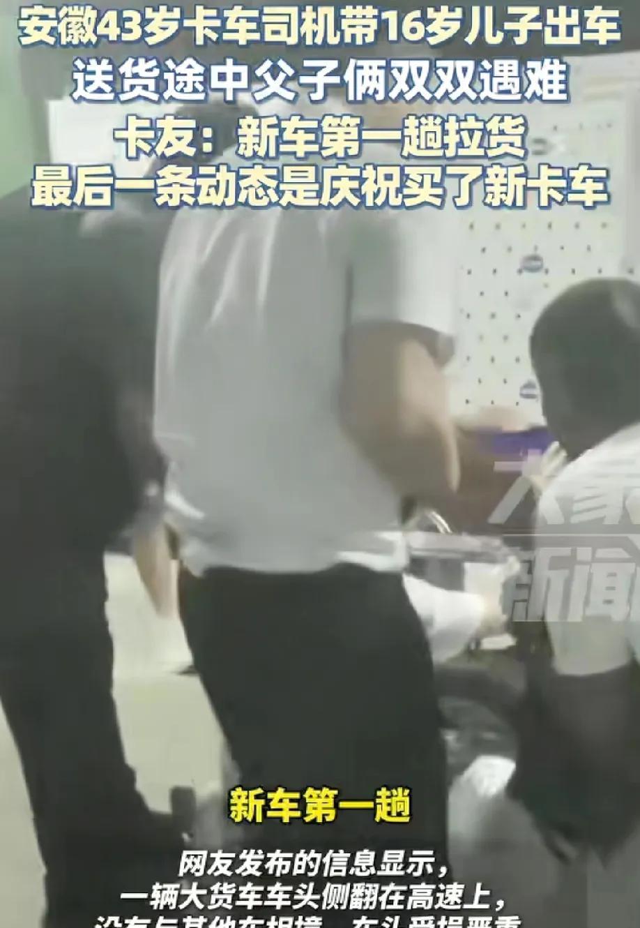 “万般皆是命,半点不由人。”安徽43岁卡车司机带着16岁的孩子开着刚买的新车,送货,本来两父子是想互相做个伴,结果遭遇车祸,父子俩双双离世! 卡友们说:这位父亲是一位单亲爸爸,新买的车,卡车司机最后一条朋友圈发的动态是庆祝新买的卡车! 关键卡车并没有与其他的车相撞,而是卡车头侧翻在高速公路上,损毁严重,导致父子俩去世。 43岁父亲通过努力换了新车,终于苦尽甘来,以为马上就可以跟儿子过上好日子,父亲忍不住跟儿子分享喜悦,带着儿子兜兜风看看风景,说离好日子好生活不远了。结果……