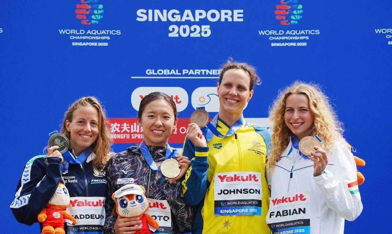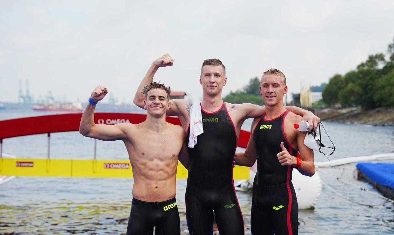 男子组 女子组 而在今天进行的男女4×1500米游泳接力赛中,德国队、意大利队、