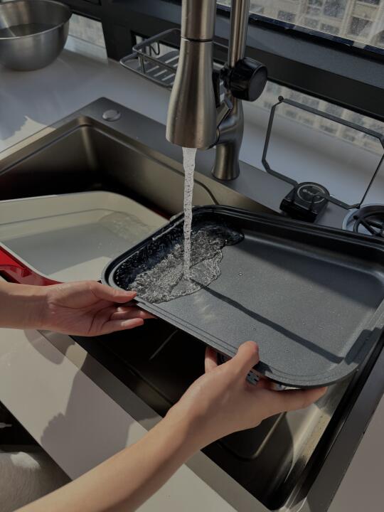 烤盘和深锅冲一下就干净了