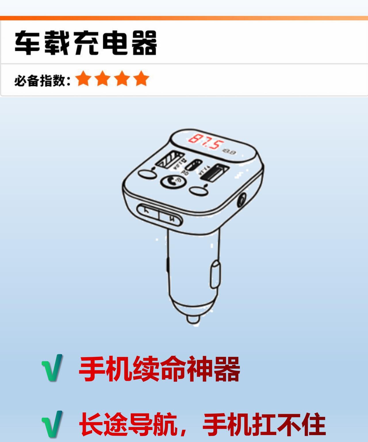 查了很多资料,发现这5个很实用的工具,但是没有强制要求安装,但是90%以上的人都会自行购买。所以今天就做了一期资料分享给大家。 1.【行车记录仪】 行车记录仪,真的是个需要配备的实用汽车用品。关键时候,它可以保护你的个人权益!尤其是遇到一些碰瓷的人,那这个绝对是制裁他的神器。还有就是遇到一些蛮不讲理的人,我们拿出记录影像,可以避免不必要的口舌之争,也能保护自己的权益。 2.【临时停车卡】(挪车号码牌) 挪车号码牌可以说是便宜的且实用的工具。很多人因为临时停车,然后别人找不到你的联系方式,被你的车子进行了破坏,比如被华商或者把车牌号弯折。有了这个临时的停车卡,大部分人会在第一时间联系你,可以避免不必要的损失。 3.【车载灭火器】 车载灭火器也是很重要的,正所谓安全第一。一旦发现车辆或周边有着火的风险,这时候灭火器的作用就非常大了。可以降低财产损失。 4.【车载充电器】 这个是4颗星,因为现在很多车子上都自带这个功能,老油车的车友们那还是要买一下,不然用手机导航分分钟就把手机的电量干没。 5.【手机支架】 这个必备指数也是4颗星,但是在燃油车时代绝对是5星必备工具。现在新能源车普及以后车机导航都比较好用,那么手机在车里面的导航场景就会少很多,但是很多车机的导航更新也不是特别及时,放一个手机支架,所谓有备无患,因为现在没有导航,可以说哪也去不了。 6.【总结】 好了,这是我自己梳理的几个车用工具,并用推荐指数的方式进行了排序,如果有什么补充,也请告诉我。【来自懂车帝车友圈】