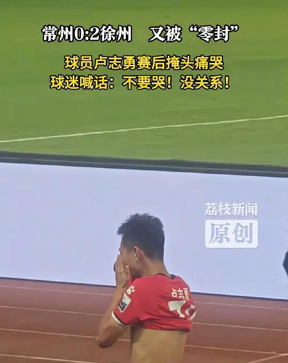 终于忍不住了, 常州这次是真的哭了 昨天晚苏超常州又被徐州“0”封,常州队的体育老师卢志勇没忍住,赛后还没下场就用衣服掩头痛哭,常州的球迷大喊“不要哭,没关系”坚持就有希望! 其实这次徐老大已经很宠爱恐龙妹了,防守为主,给足了恐龙妹的进攻发挥,从没见过老徐这么龟缩过很温柔了,看看隔壁那两老六,都是4-5球的进