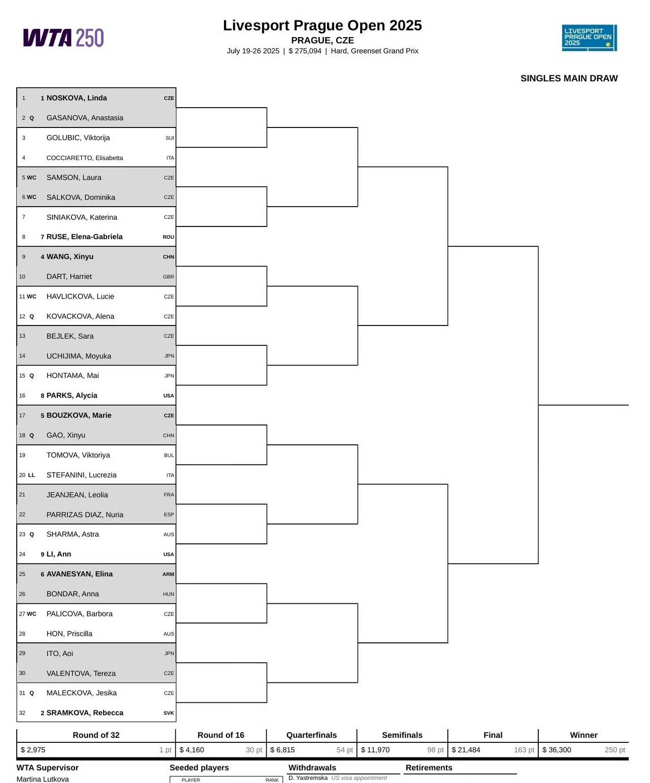 另外在布拉格WTA250资格赛决胜轮的比赛,