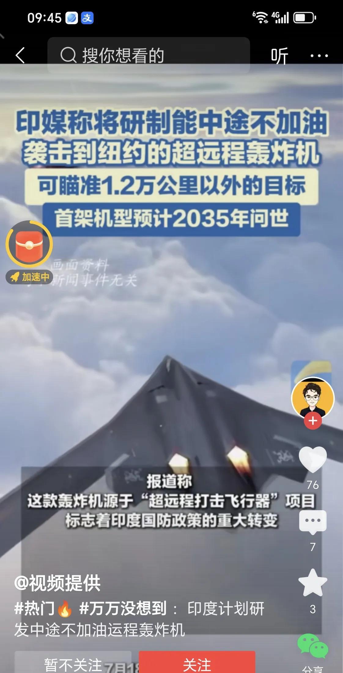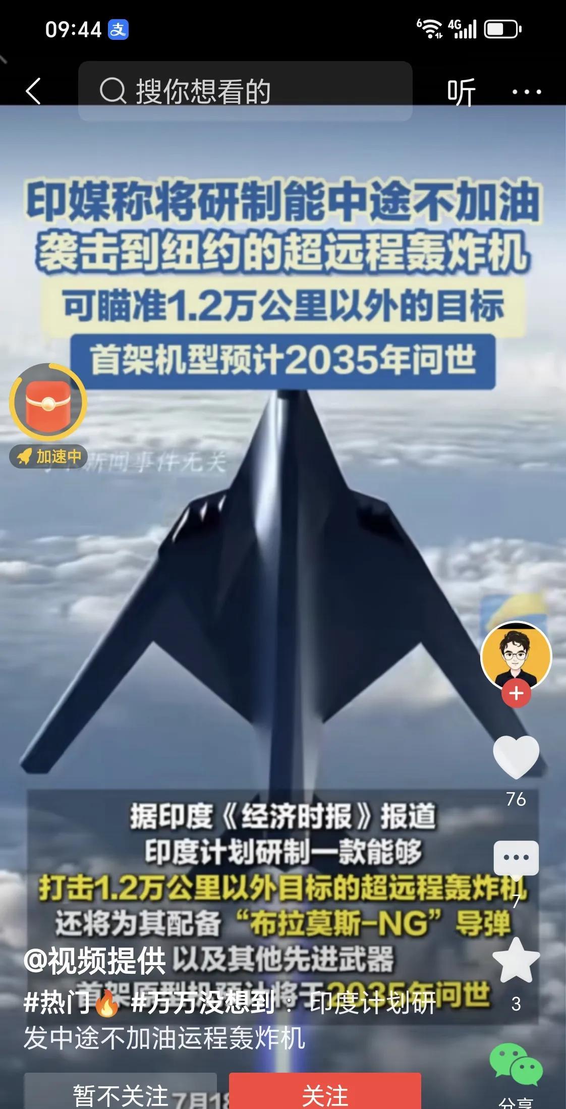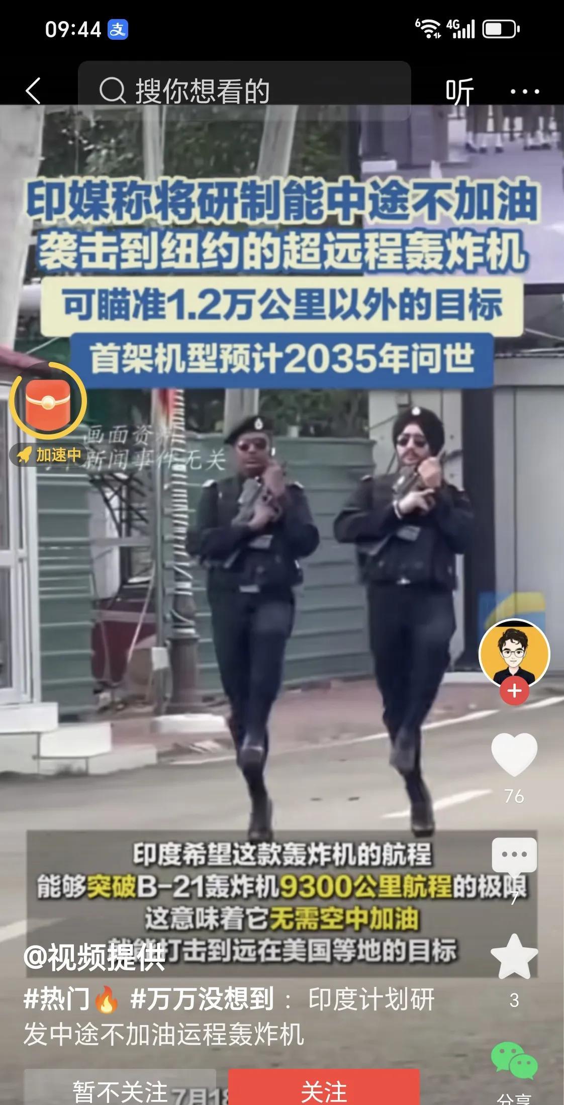 印度阿三的媒体报道印度开始研制中途不加油的远程战略轰炸机,最远可以攻击美国纽约,最早有希望2035年装备部队,该机计划装备AI指挥系统,采用GPS互联链接,武器采用俄罗斯的装备,可以实现自动驾驶,这个可以自动进攻敌人,关键是人家目标定的高,主要是针对美国!呵呵,不知道大漂亮怎么想?[锦鲤到来]