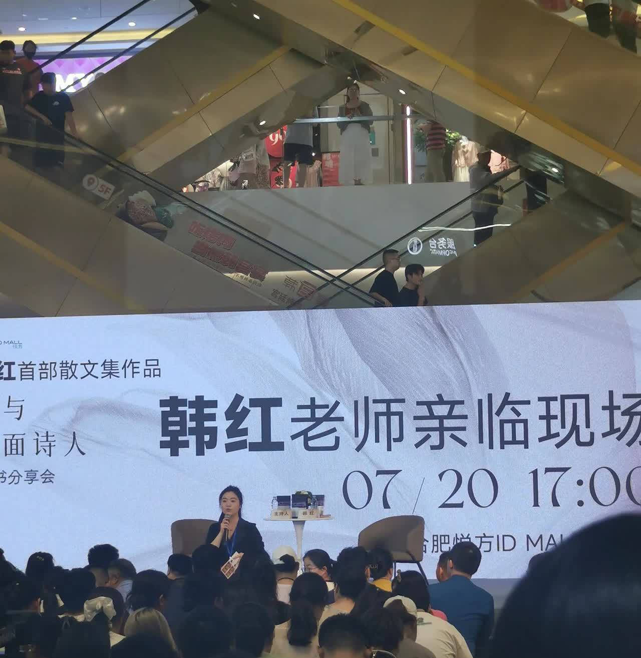 歌唱家、慈善家韩红来了,坐标安徽省合肥市包河区滨湖"悦方”。今天下午是一个签名售