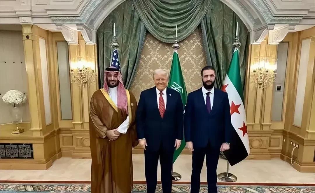 看看跟朱拉尼合影的几个人,哪个最凶相?有人说朱拉尼长得最为凶恶狡猾,但也有人说右边那一个看上去最为凶恶。 我也觉得最右边的最凶恶。不过仔细看他的眉目有点像沙特王储小萨勒曼。 但是沙特王储小萨勒曼是贵族,大袍一穿就贵气了。而这个人看上去像个土匪,一脸匪气。