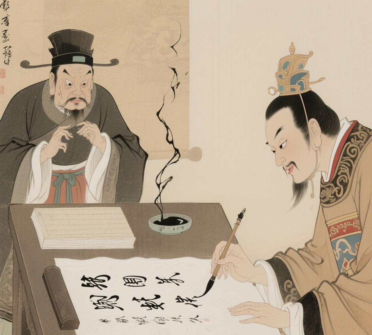 南朝齐最机智大臣:皇帝逼他比书法,他故意写丑字保命,一句话噎得皇帝没脾气 大臣明明是书法大家,却故意把字写得歪歪扭扭像鸡爪刨的,皇帝还拍手叫好:“还是朕写得好!”—— 这波 “影帝级” 操作,正是南朝齐大臣王僧虔的保命智慧。 南齐开国皇帝萧道成是个 “书法迷”,但水平也就刚够入门,却天天逼着大臣们跟他比书法,谁要是写得比他好,轻则被穿小鞋,重则丢官去职。 有天早朝刚结束,萧道成就拉着王僧虔往偏殿走:“王爱卿,听说你书法天下第一,今天咱君臣俩露一手?” 王僧虔心里咯噔一下 —— 这位皇帝的小心眼出了名,上次有个翰林写得比他好,当场就被派去看守皇陵了。 铺好宣纸,萧道成挥毫写下 “国泰民安” 四个大字,笔锋歪歪扭扭还带墨团,却得意地问:“爱卿你看,朕这字如何?” 王僧虔赶紧拱手:“陛下墨宝气势磅礴,臣望尘莫及。” 轮到王僧虔动笔,他深吸一口气,故意把看家本领藏起来,写得横不平竖不直,连笔画都缺胳膊少腿,活像顽童涂鸦。写完还假装紧张地说:“臣…… 臣今天手有点抖。” 萧道成眯着眼看了半天,突然冷笑:“王爱卿别装了,你这字分明是故意写丑的!” 王僧虔 “扑通” 跪下,磕头如捣蒜:“陛下明察!臣哪敢跟陛下比?您的字是天子气象,臣的字就是凡夫俗子涂鸦,根本不在一个档次。” 这话说到萧道成心坎里,但他还想拿捏一下:“那你说,咱俩的字到底谁第一?” 王僧虔眼珠一转,说出一句千古名句:“臣的字,在大臣里是第一;陛下的字,在皇帝里是第一。” 萧道成听完哈哈大笑,拍着他的肩膀:“还是你会说话!” 其实心里跟明镜似的 —— 这老狐狸是故意让着自己,但又给足了面子,实在挑不出错处。 后来有人问王僧虔:“您放着好字不写,委屈不委屈?” 他捋着胡子笑:“写字是消遣,保命才是大事。皇帝想炫耀就让他炫耀,我写我的丑字,换个安稳太平,值!” 有次宫宴,萧道成喝醉了,非要让王僧虔把 “丑字” 和自己的 “御笔” 挂在一起展览。太监们偷偷劝王僧虔:“陛下这是故意羞辱您啊!” 王僧虔却淡定地说:“挂就挂,百姓看到了只会说‘皇帝字虽一般,但心胸宽广能容大臣’,这不是帮陛下赚名声吗?” 这话传到萧道成耳朵里,更觉得王僧虔懂事,不仅没为难他,反而升了他的官。而王僧虔那些故意写丑的字,后来被好事者收集起来,居然成了 “避祸书法” 的典范,流传了上百年。 只能说,在皇帝面前太出风头未必是好事。像王僧虔这样揣着明白装糊涂,用丑字保命的智慧,比写一手好字更难得!