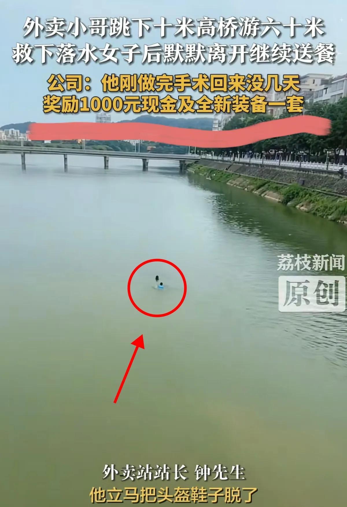 “上人民日报了!”广东茂名,50岁外卖员送餐经过大桥,突然跳下车,从10余米高桥跳下,迅速向水中间游去,原来是有人不慎落水,他将落水者救起之后,有人让他留下姓名和电话,可他却摆摆手离开:我还有餐没送。网友:湿漉漉的背影令人动容,为你点赞! “救命啊!救救我!谁能来救救我!”一位女子在河里面绝望的呼救着。 广东茂名的一名大哥,正像往常一样送着外卖,就在他经过鉴江河的时候看见桥边上围着一群人。大哥原本就是想凑个热闹没想到看见一名女子在河里面挣扎着,嘴里还大声叫着救命。 大哥察觉到女子渐渐体力不支就想下去帮帮这名女子,就想着要救下女子。于是大哥二话不说就翻过护栏从十余米高的桥上跳进了河里,快速的游到女子身边将女子救到了岸上。大哥将女子送到了岸边好心人的手上之后就转身离开。 岸上面的好心人拉着大哥询问大哥的名字时,大哥表示自己就是一个路人,现在还有外卖没送就离开了。好心人看到大哥那瘦弱的背影对大哥很是钦佩,岸上有人将这件事全程录了下来发到了网上。 视频一经发出,网友们纷纷称赞大哥见义勇为。致敬大哥能从那么高的地方跳下来已经需要很大的勇气了,还游了那么远去救人,真的是拿命在救人。 官方记者看到了这件事情,专门找到了大哥的家里面对大哥进行采访。大哥表示当时来不及多想,就想着得赶紧救人。 经过了解,大哥叫吕炜权,如今已经五十岁了。一周前刚刚做完胆囊手术,医生叮嘱大哥要静养两周,但是大哥为了偿还手术时欠下的债务,手术后一周就开始继续送外卖。 事后外卖的官方平台也向吕大哥颁发了“蓝骑士社区侠”荣誉称号并给予现金奖励,阿里公益也发出“天天正能量特别奖”,两项奖金共计两万元。次日,吕大哥所在的公司也对大哥进行了表彰慰问,送上了锦旗、新的装备和一千元奖金。 被救的人在身体好了之后也前往吕大哥家里,对吕大哥表达感谢。称吕大哥不仅是救了女子一人,更是挽救了女子一家。如果不是吕大哥她肯定就活不成了。表示吕大哥今后有需要帮助的地方尽管开口,一定会义不容辞的帮忙。 网友们了解到了具体情况,表示这种正能量的事情一定要大力宣扬,希望大家出门在外要做一个见义勇为的人。同时希望大家如果遇到这样的情况,及时做好保护措施之后再实施救人,防止人没救上来反而将自己搭进去。 也有很多网友看吕大哥身穿外卖员的衣服,表示以后一定会尊重每一个外卖员,如果有外卖员出现超时的情况可能是在救人。以后在路上遇到外卖员一定让外卖员先走。 一个善良的人引发了这么大的轰动,希望以后社会上能有更多的好人。网上也有更多正能量的内容。 对于这件事情你们有什么看法?