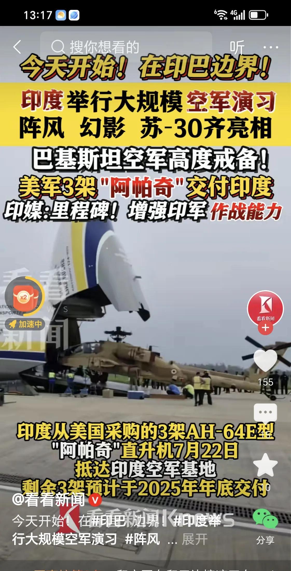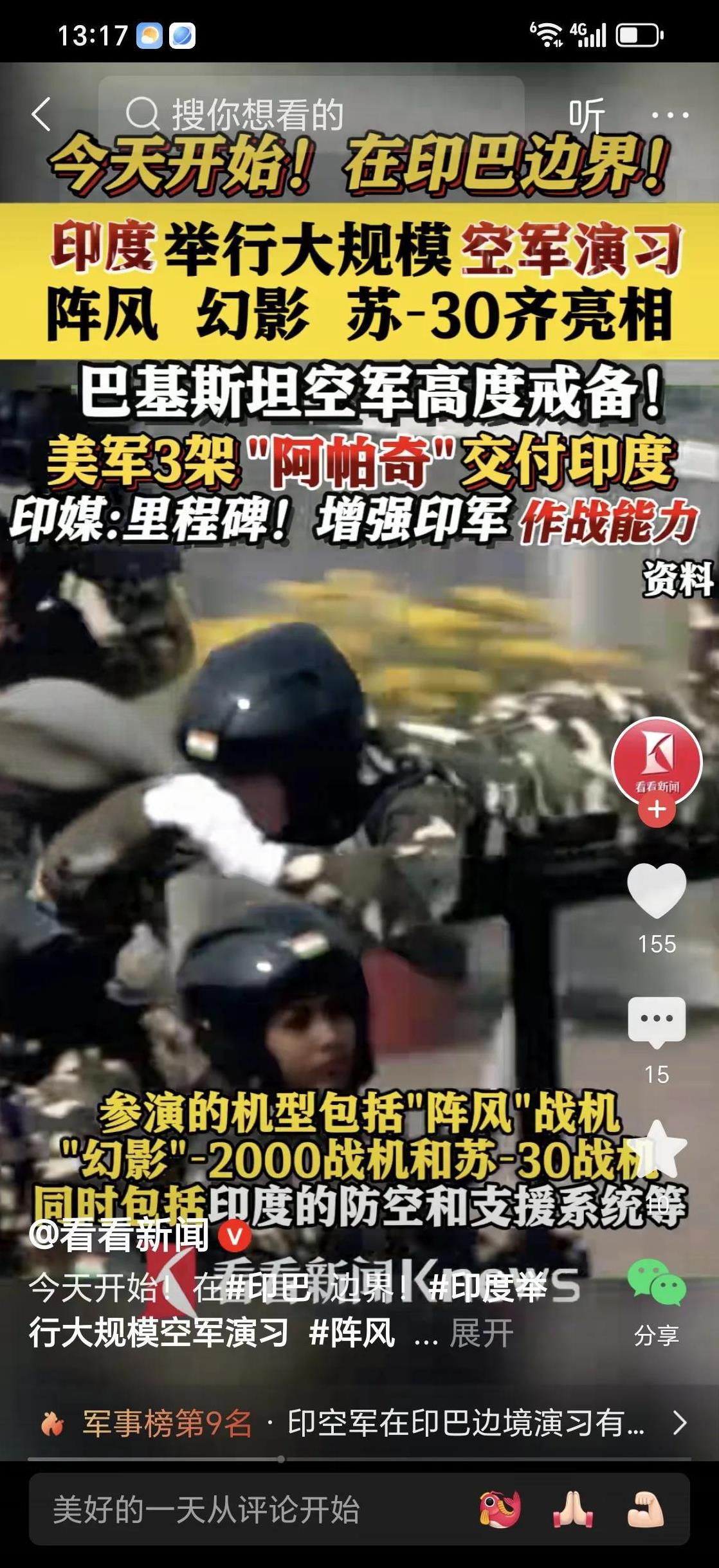 今天印度又开始在印巴边界附近开展军事演习,出动了法国阵风,幻影,俄罗斯苏30,米