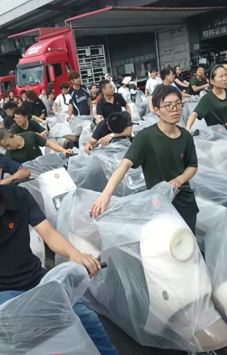 雅迪发福利了,人手一辆电瓶车,看起来都不是太高兴啊,估计电动车低工资了 公司送车还愁眉苦脸的,现在公司估计也都挺难的,撑不下去就要裁员了。估计也卖不掉了吧,马上91新国标不给上牌了吧?脑袋一拍一个决定,脑袋一拍又一个决定,一个决定死一批工厂,下岗一大批工人 终于知道每一次新国标一换 旧车去哪了 合着都是员工一人一辆,加上家里人和亲戚朋友
