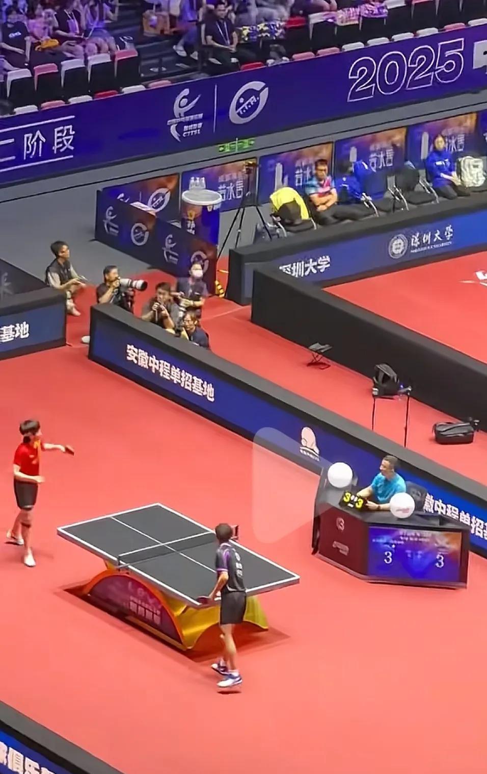 这明显的是主办方故意为之。 现场一片骚动, 男女主角却习以为常,见怪不怪。 乒超联赛第二阶段如期举行, 大腕云集,群英荟萃, 真是八仙过海,各显神通。 今天上午的比赛, 樊振东,王楚钦,孙颖莎悉数登场, 加油声此起彼伏,不绝于耳。 莎莎和大头的比赛同时进行, 莎莎和大头同时段参赛, 两场比赛赛场刚好毗邻, 这分明是主办方故意安排, 唯恐天下不乱, 这边是莎莎协同队友双打, 那边是大头对阵徐海东的单打, 好巧不巧,莎莎的球居然打飞了, 好巧不巧莎莎的球居然落到了王楚钦脚下, 大头果断示意, 毫不犹豫为莎莎捡球, 不经意间又撒了波狗粮, 看到这一幕, 球迷的呼喊声震耳欲聋, 两个人偶尔的互动都能引起排山倒海般的骚动, 更理解他们在众目睽睽之下刻意保持距离的原因了, 不得不做熟悉的陌生人, 情有可原, 关注度太高了。