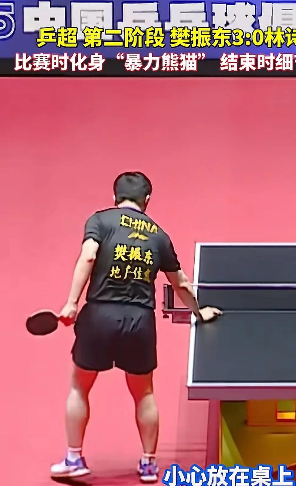 吃惊的不是他又获胜了, 而是他弯下腰的一瞬间, 又被小胖圈粉了。 乒超联赛第二阶
