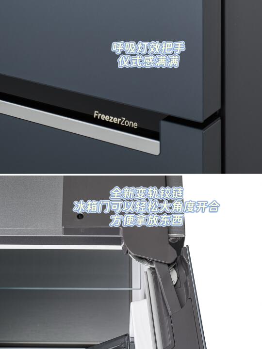 全新变轨铰链,零嵌安装的同时可以大角度开合冰箱门,再也不用对着冰箱侧面的大缝儿焦虑了!