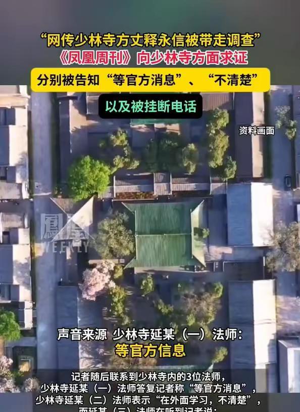 少林方丈释永信被曝带走调查,少林寺方表示:不清楚,等官方消息! 释永信这些年,真