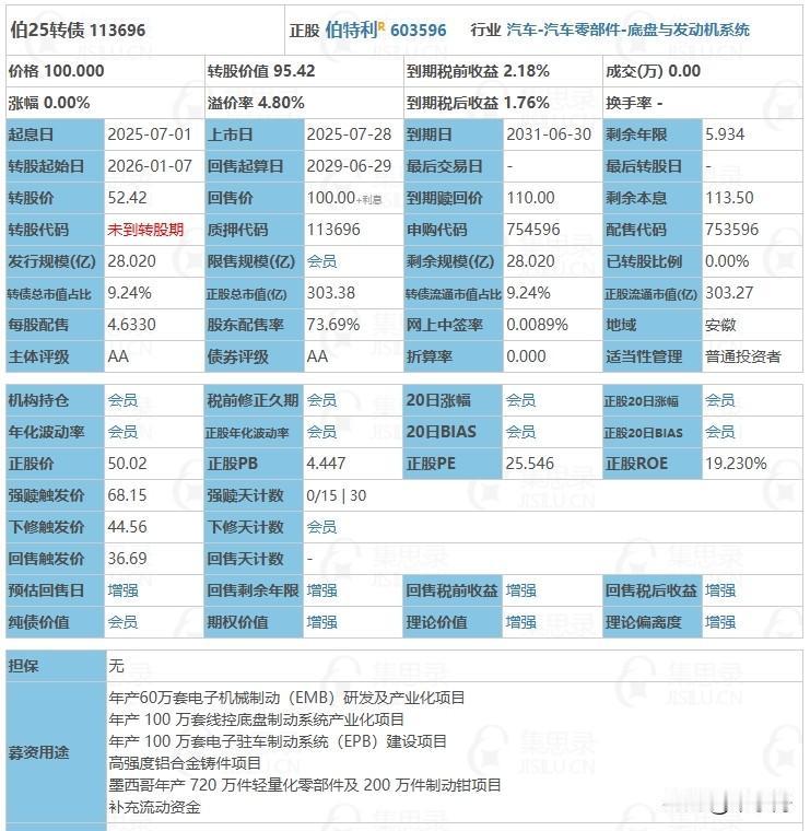 7月28日伯25转债上市。根据当前市场情绪及可转债交易行情,正股质地较好,伯25