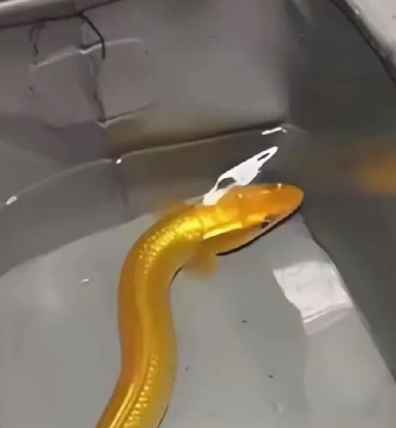 福建一男子野外钓到奇怪生物,刚开始他以为是一条罕见的黄鳝,也没有多想。回到家后才发现这根本就不是黄鳝。 虽然从体型来看跟黄鳝很相似,但是这条生物的嘴明显要尖一些,颈部两侧各有一片小小的翅膀,而且仔细观看还会发现,这生物的背部好像还长着若有若无的鳞片。 有见过这种生物的网友吗?这到底是个什么生物哟!搞的我都想去福建抓黄鳝了。