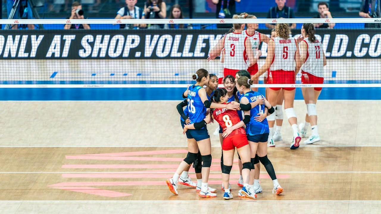 输掉比赛后日本女排被扣除7.38分,总分348.27即时下降一位暂列第五,中国女排348.60分上升至第四。