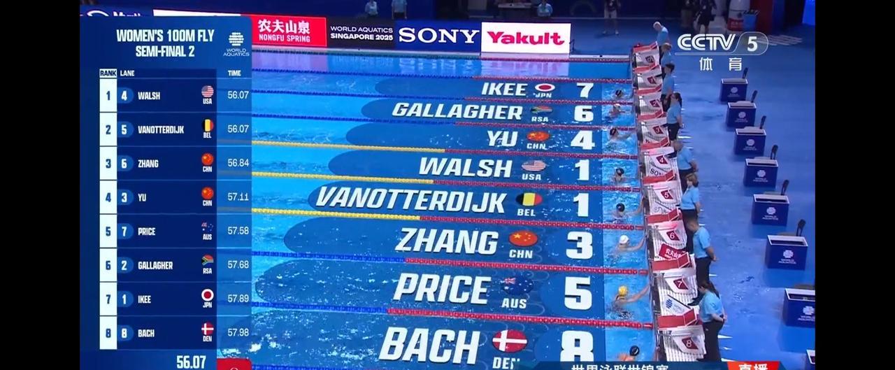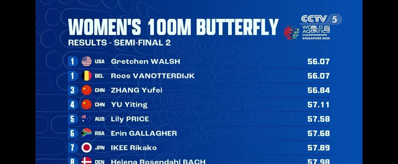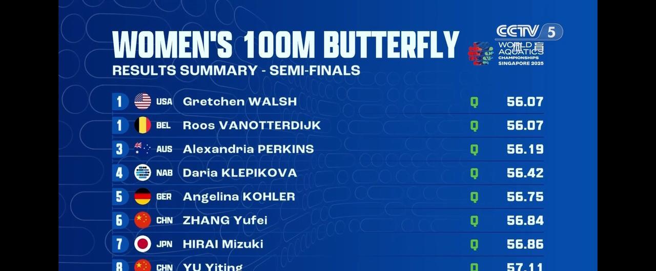 第二组的比赛张雨菲和余依婷安排在第三道和第六道出发,张雨菲出发后就积极往前游,而余依婷则依靠后程发力,最终两人名列小组第三和第四,总成绩以第六和第八晋级决赛,加油??